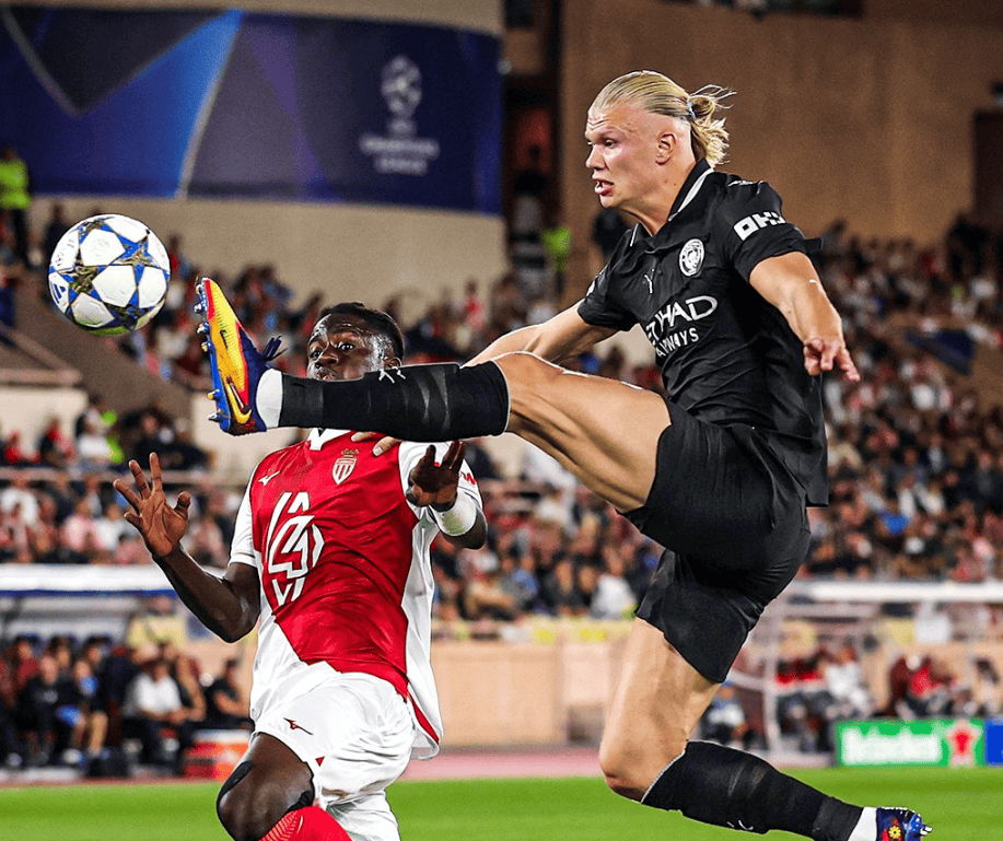 虎扑10月02日讯 欧冠联赛阶段,曼城对阵摩纳哥,哈兰德在上半场比赛梅开二度。